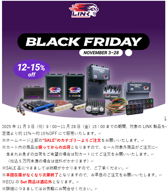 LINK JAPANよりLINK商品BLACK FRIDAY SALEが開催されております。